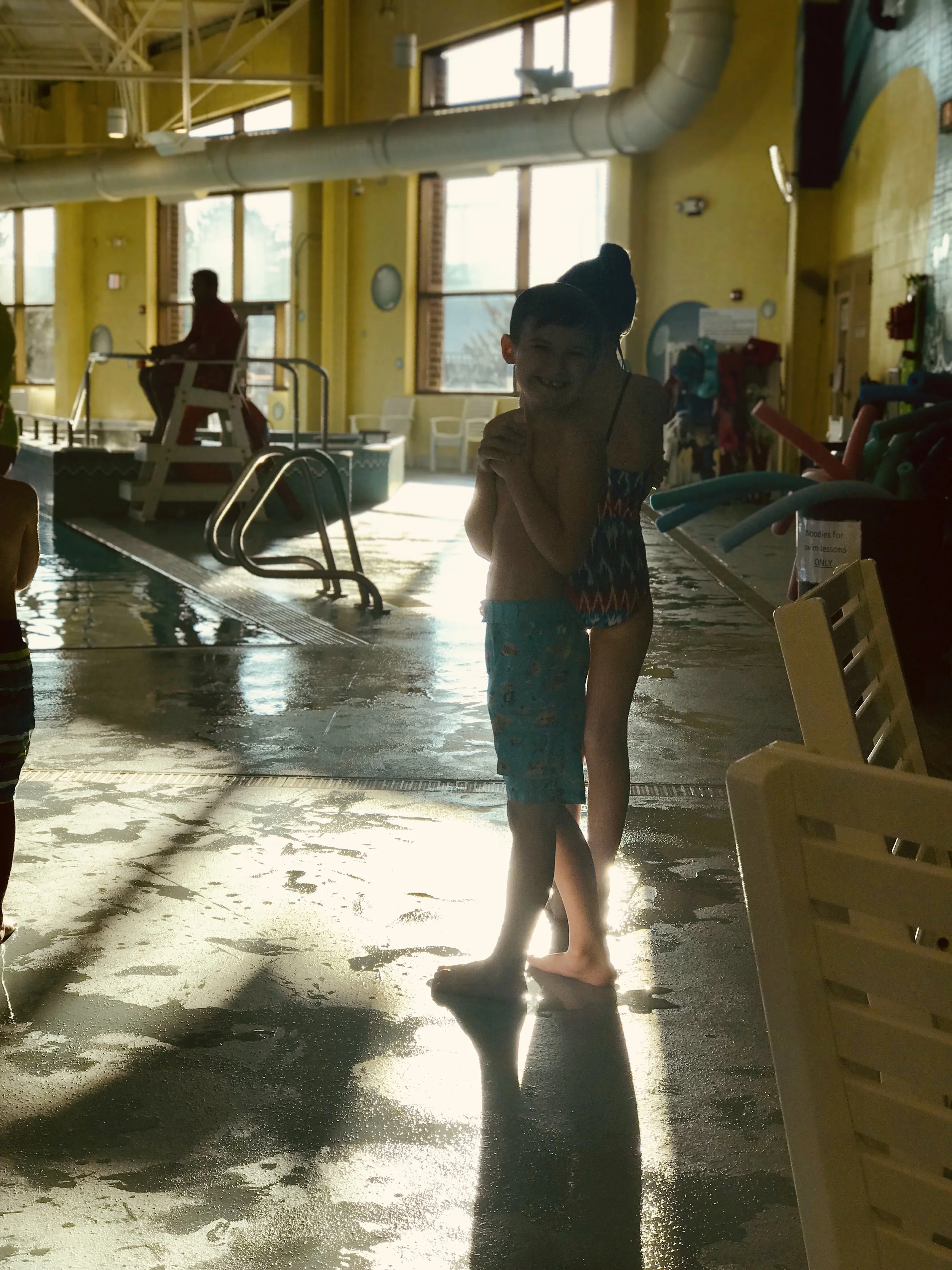 We walked into the Kroc Center (a true gem for families in the South Bend community) and Van quickly changed into his swimsuit. We then entered the aquatics area and checked in.